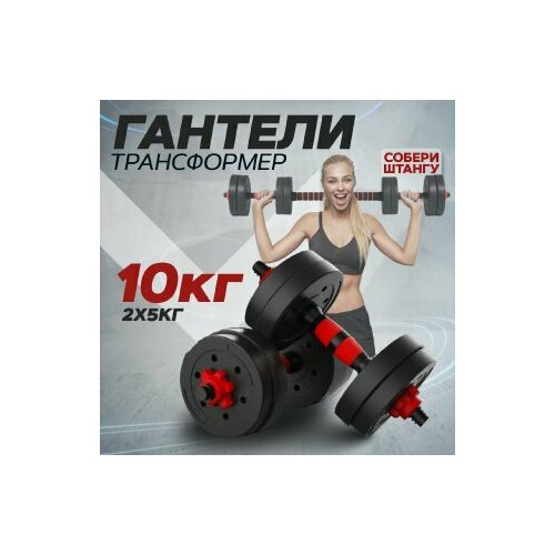 Гантели Ахиллес разборные для фитнеса + переходник на штангу спортивную, общий вес 10 кг, 2 шт. по 5 кг