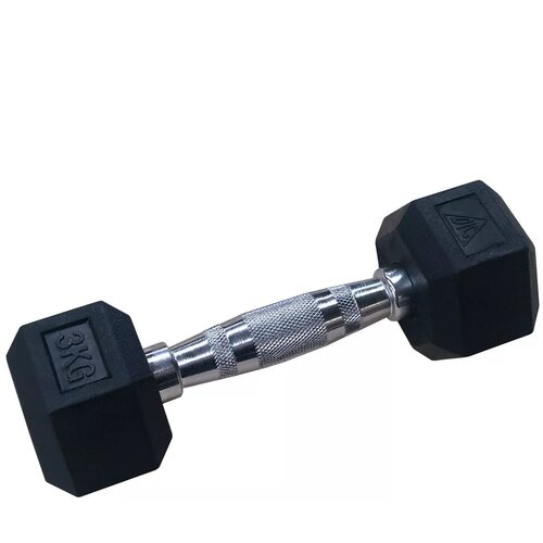 Гантель 3 кг обрезиненная, гексагональная, хромированная ручка