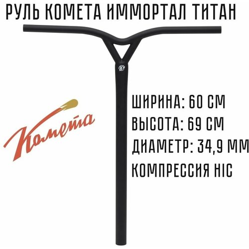 Руль для трюкового самоката HIC Комета Иммортал Титановый, Черный
