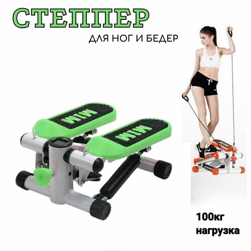 Мини-степпер тренажер для дома с эспандерами для ног и ягодиц, зеленый