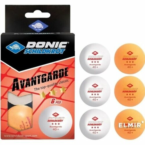 Мячи для настольного тенниса DONIC AVANTGARDE 3* 40+, 6 штук, белый + оранжевый