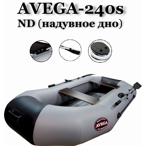 Лодка AVEGA 240нд, надувное дно, армированный ПВХ, , цвет /черный/серый