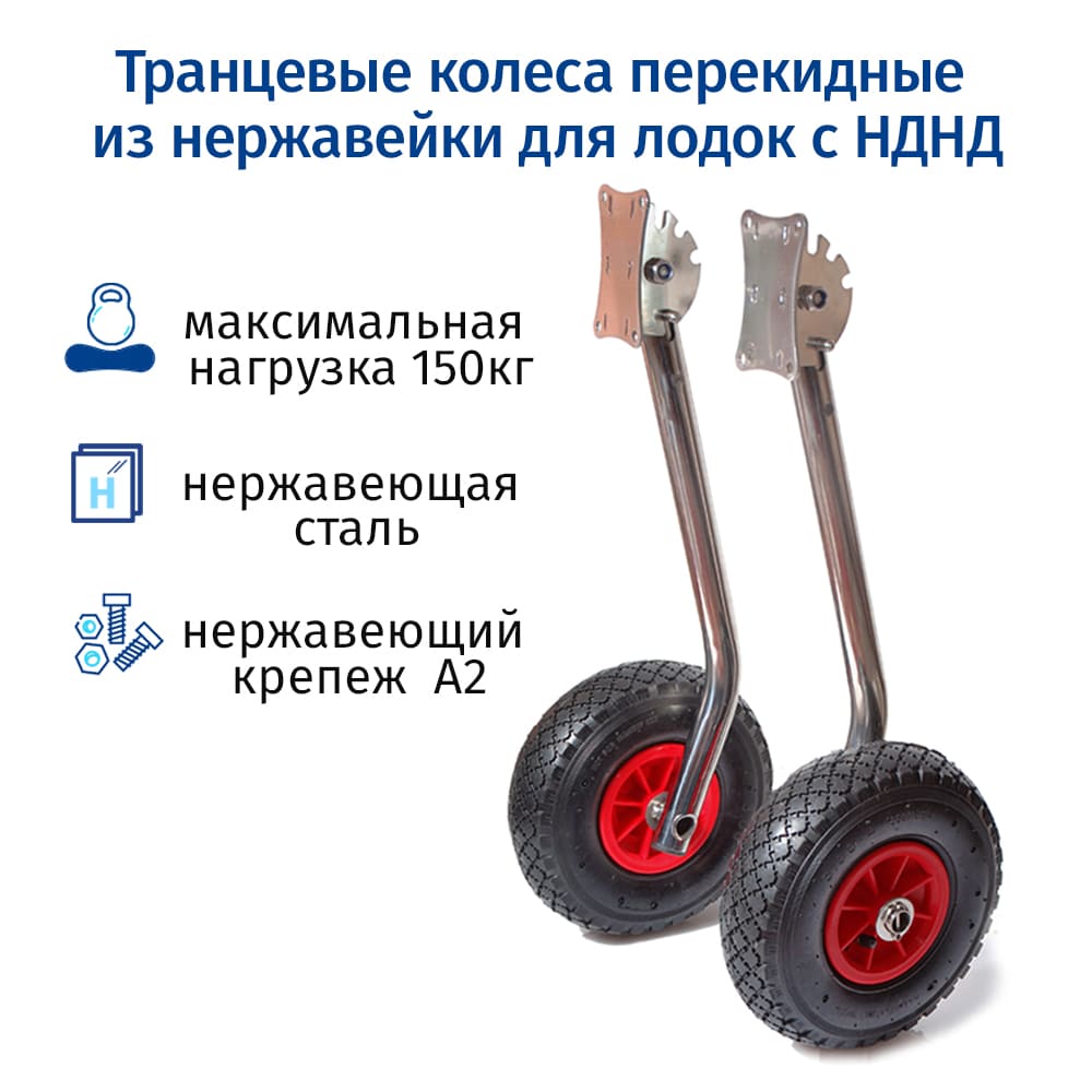 Колёса транцевые перекидные, фланец Ежик (для лодок с НДНД), нержавейка 600013217851