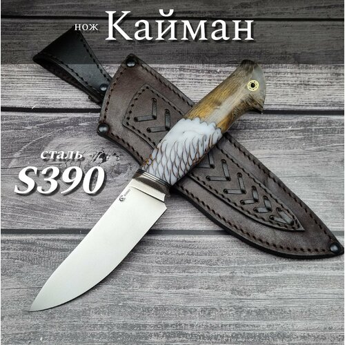 Нож Кайман из стали S390 рукоять композит и ножны из натуральной кожи, Кузница Семина официальный производитель