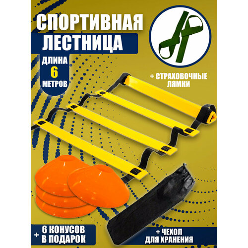 Лестница координационная 6 метров + 10 цветных конусов для спорта