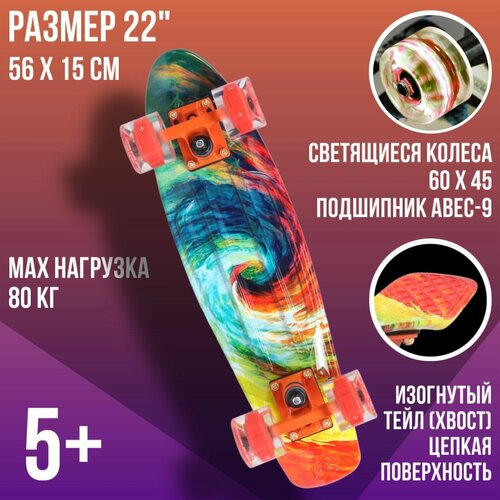 Скейтборд, Пенни борд ONLYTOP "Турбопушка" 56 х 16 см, колеса световые PU 60х45 мм, ABEC 7, алюминиевая подвеска