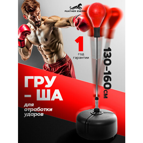Груша напольная на стойке PANTHER ENERGY, от 130-160 см боксерская для бокса в красном цвете