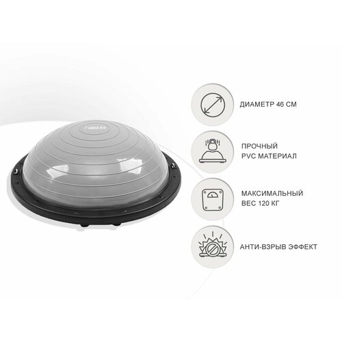 Балансировочная полусфера UNIX Fit 46 с эспандерами в наборе, cтеп-платформа, bosu до 120 кг