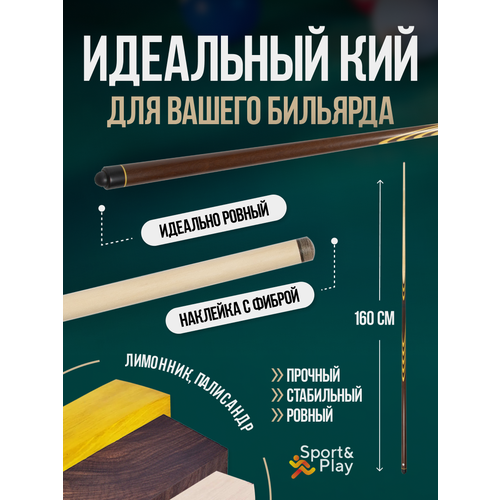 Кий Sport&Play, для русского бильярда, двухсоставный, 160см (палисандр, лимонник, граб)