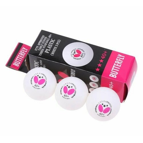 Мяч 3 шт. BUTTERFLY 3*** 40+ бел. для настольного тенниса