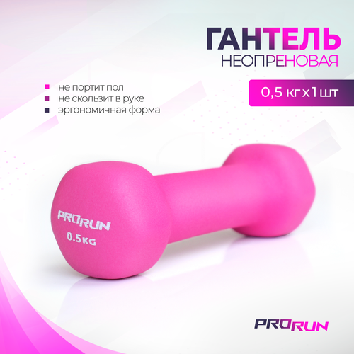 Гантель неопреновая ProRun, 0,5 кг х 1 шт, розовая, 100-8349