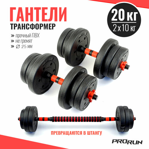 Набор гантелей виниловых ProRun 20 кг + коннектор для штанги, 100-5024