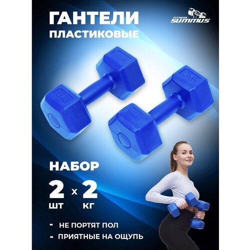Гантели виниловые с цементом (пластик) Summus 2 шт. по 2 кг женские для дома и зала, детские, арт. 4930-388-blue