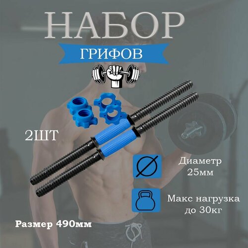 Цены на Набор из двух гантельных пластиковых грифов с гайками 40 см (d 25) синий, черный в г. Пермь
