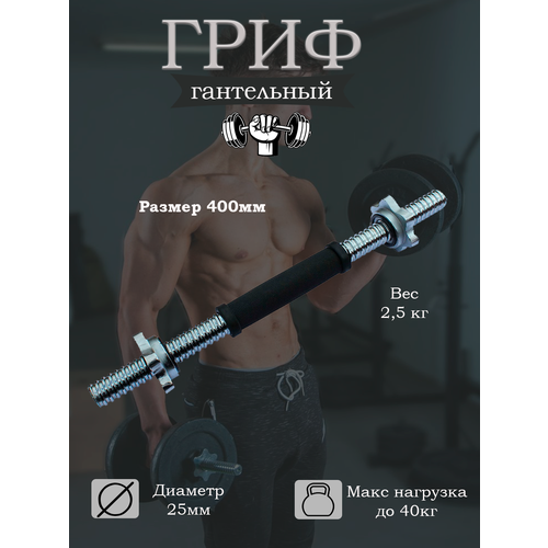 Гриф гантельный / Гриф прямой 35 см. D25 мм. замок гайка
