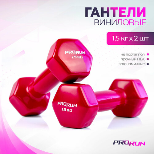 Гантели виниловые ProRun, 1,5 кг х 2 шт, красные