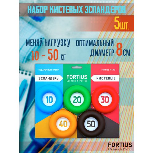 Набор кистевых эспандеров, Fortius, 5шт (10-50кг), подложка