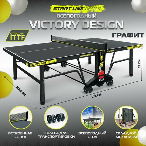 Стол теннисный Start Line VICTORY DESIGN 6 Всепогодный , для улицы, с колесами, сеткой