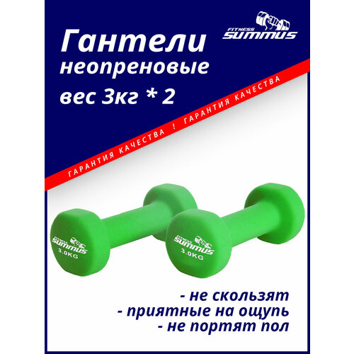 Гантели для фитнеса неопреновые Summus 2 шт. по 3 кг женские, мужские для дома и зала, для детей, арт. 500-103-green
