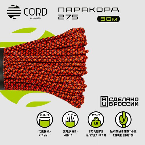 Паракорд 275 CORD RUS nylon 30м 2мм NEON ORANGE SNAKE