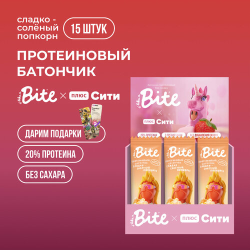Протеиновые батончики без сахара Take a Bite, Плюс Сити игра, Сладко-соленый попкорн, 15 шт по 40 гр