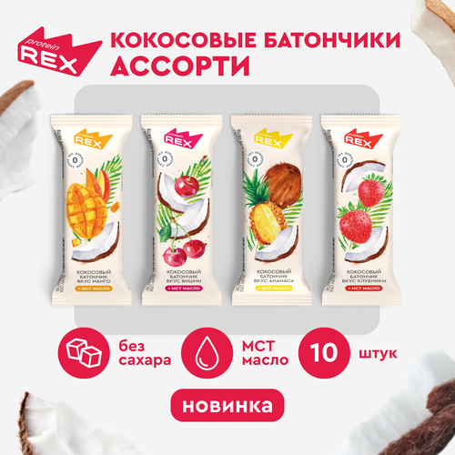 Кокосовые батончики без сахара ProteinRex Ассорти 10шт х 40г, ПП сладости