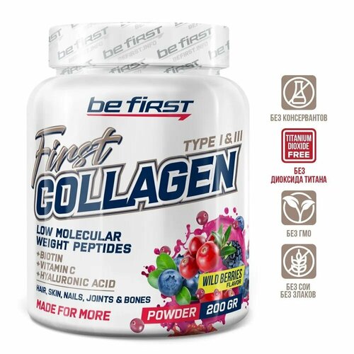 Be First Collagen + hyaluronic acid + vitamin C 200 гр (Лесные ягоды)