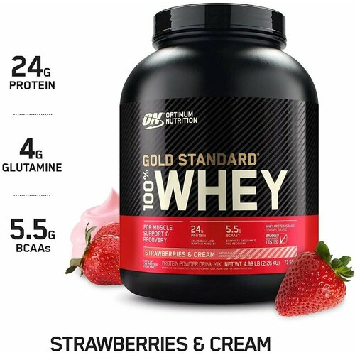 ON 100% Whey Gold standard 5lb (Strawberry Cream), Протеин 2270 грамм, Белковый коктейль, Спортивное питание
