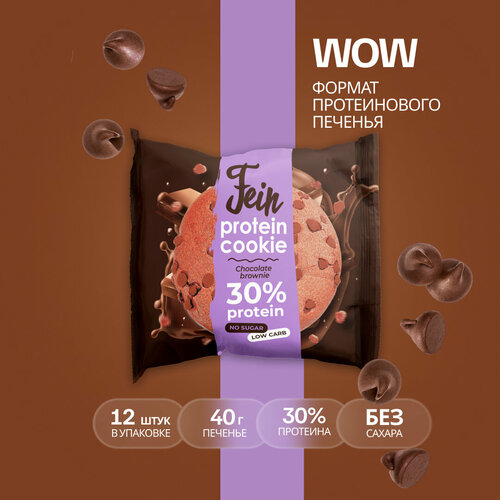 Протеиновое печенье без сахара Fein Шоколадный брауни 12 шт. по 40 гр.