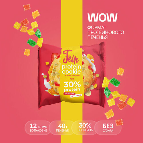 Протеиновое печенье без сахара Fein с фруктами 12 шт. по 40 гр.