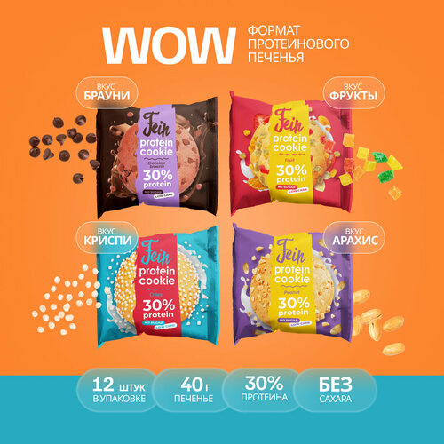 Протеиновое печенье без сахара Fein Ассорти вкусов 12 шт. по 40 гр.
