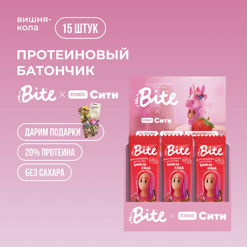 Протеиновые батончики без сахара Take a Bite, Плюс Сити игра, Вишня-Кола, 15 шт по 40 гр