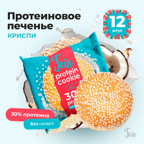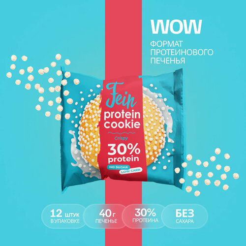 Протеиновое печенье Fein без сахара с воздушным рисом 12 штук по 40 грамм