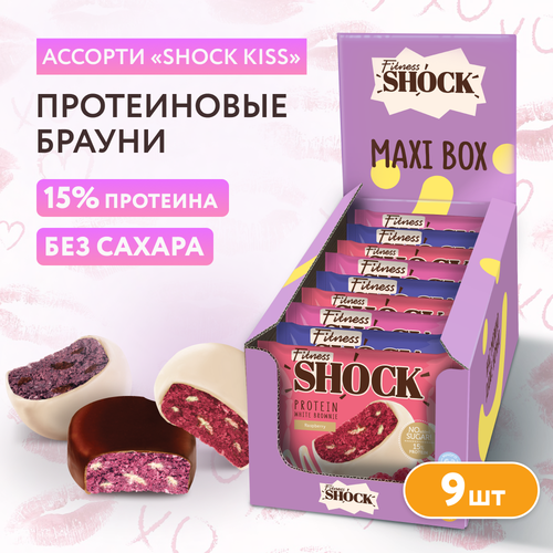 Протеиновое печенье без сахара брауни FitnesSHOCK Ассорти«Shock Kiss», 3 вкуса, 50гр, 9 шт