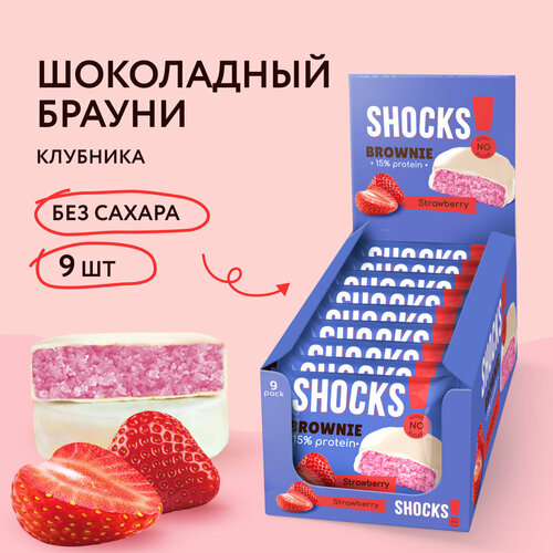 Протеиновое печенье Брауни без сахара SHOCKS! Клубника, FitnesShock 9 шт