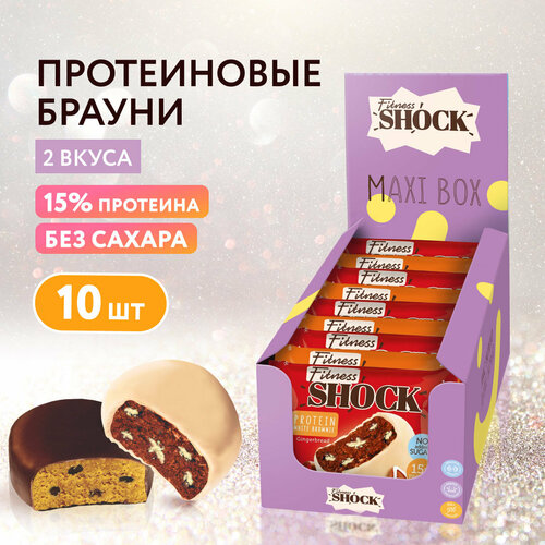 Ассорти "Double Shoсk" батончики и протеиновое печенье без сахара Брауни SHOCKS! FitnesSHOCK, брауни без сахара, протеиновое печенье без сахара, батончики без сахара, 12 шт