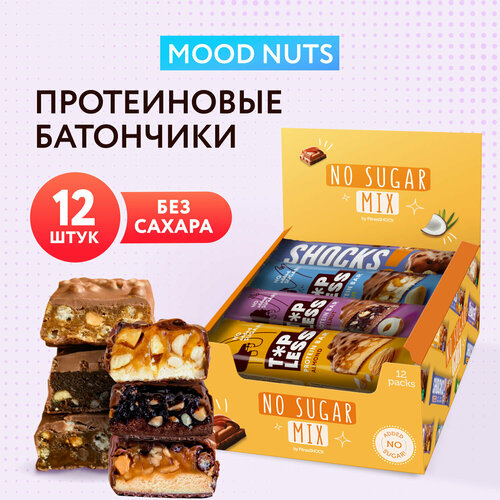 Ассорти батончиков MOOD NUTS FitnesSHOCK протеиновые батончики, шоколадные батончики 12шт