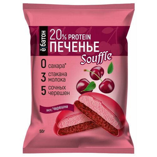Протеиновое печенье ёБатон с белковым суфле, 9 шт по 50 г, вкус: черешня