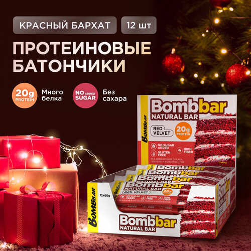 Bombbar Протеиновые батончики без сахара Красный бархат, 12шт х 60г