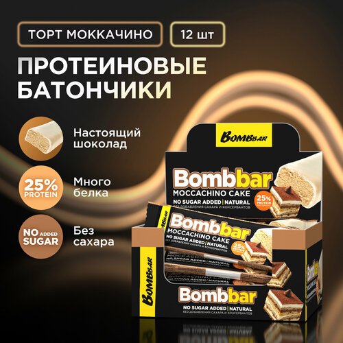 Bombbar Протеиновые батончики в шоколаде без сахара "Торт моккачино", 12шт х 40г