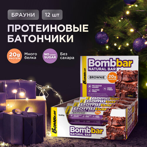 Bombbar Протеиновые батончики без сахара Шоколадный брауни, 12шт х 60г