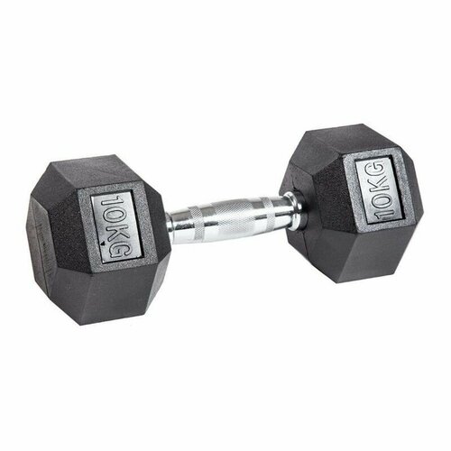 Гантель 10 кг обрезиненная, гексагональная, хромированная ручка