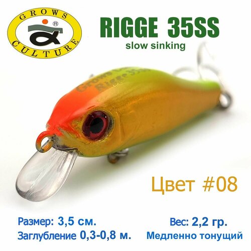 Воблер Grows Culture RIGGE 35SS цвет 08 UV / Приманка для ловли форели и окуня