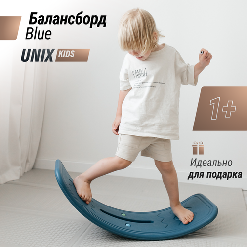 Баланс борд детский UNIX Kids Blue, для дома, пластик, до 30 кг, рельефная текстура, противоскользящие накладки, голубой, 90х30х20 см