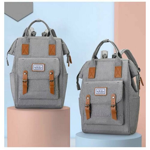 Однотонный женский рюкзак серого цвета с кожаными пряжками