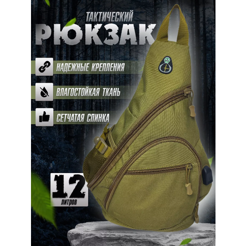 Рюкзак однолямочный 12 литров хаки (зелёный)