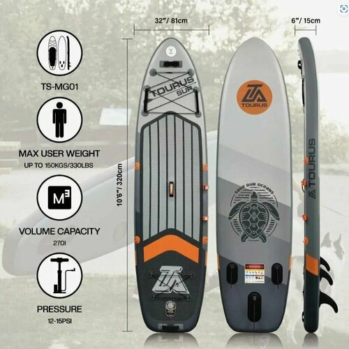 Сапборд Supboard Tourus TS-MG01 10,6* 320 cм серый с оранжевым (полный комплект МГ)