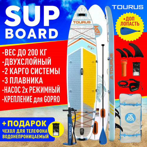 Надувная серфинг доска SUP board TOURUS 11.6 TS-AB01 (350х91х15 см) с рюкзаком, веслом, насосом и страховочным лишемSUP-доскаSUP-доска