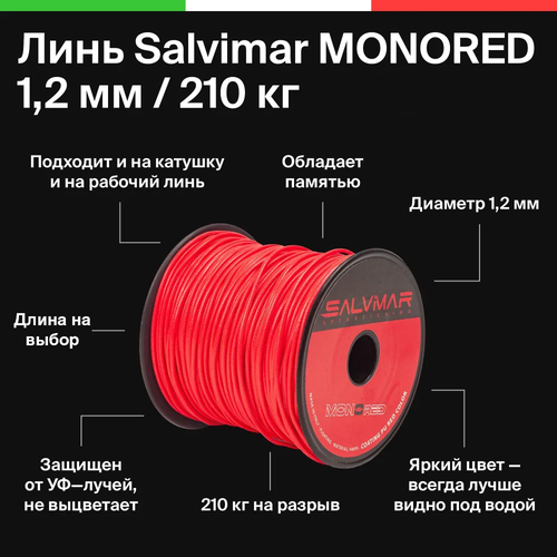 Линь Salvimar MONORED 1,2 мм 210 кг. на разрыв, для подводного ружья, подводной охоты, цена за 1 метр