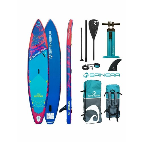 Сапборд надувной с веслом Spinera Suptour 12 DL ULT голубая с розовым рюкзак, насос, весло, плавник, лиш, ремкомплект габариты 366x76x15 см (22223)